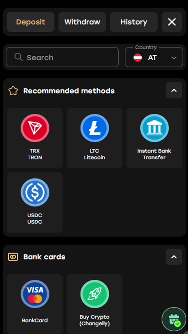 Это игровой сайт, который, как мы уже упоминали, предоставляет различные варианты оплаты в криптовалюте для пополнения и вывода средств , а также другие надежные и популярные банковские методы, такие как платежные карты и электронные кошельки.
