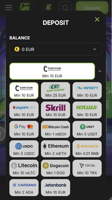 Казино принимает платежи с помощью кредитных карт, электронных кошельков, криптовалют и прямых банковских переводов. Все эти способы обеспечивают довольно быстрые выплаты, за исключением прямого банковского перевода. Выплаты с электронных кошельков и криптовалют происходят мгновенно, что просто замечательно. Следует отметить, что существует лимит на вывод выигрышей: 3000 долларов в день, 5000 долларов в неделю и 20 000 долларов в месяц.