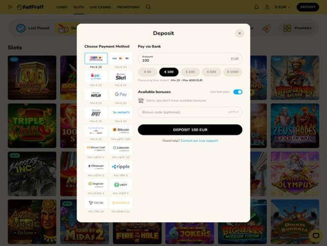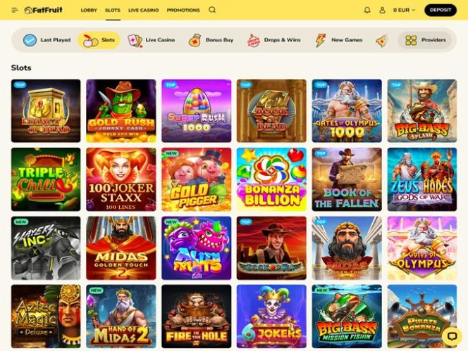 Начнём с того, что казино FatFruit порадует игроков своей невероятно широкой и обширной библиотекой игр. Независимо от того, являетесь ли вы поклонником слотов на реальные деньги , игр с живыми дилерами или онлайн-настольных игр , количество доступных вам вариантов поражает воображение, и вам понадобятся тысячи часов, чтобы изучить весь контент.