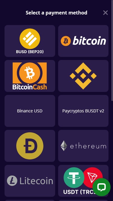 Помимо этого, доступны также криптовалютные способы оплаты. Для вывода и пополнения средств можно использовать такие валюты, как Bitcoin, Bitcoin Cash, Dogecoin, Ethereum, Litecoin, Tron и Tether .