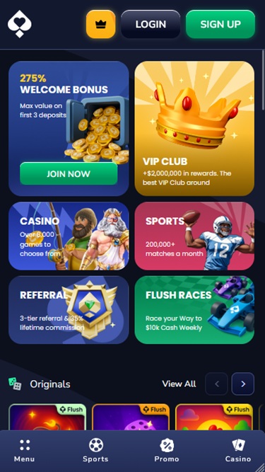 Если вы предпочитаете криптоказино, то Flush Originals может стать вашей любимой категорией игр, наполненной такими популярными играми, как Dice, Crash, Mines, Wheel, HiLo, Limbo, Plinko, Keno и многими другими. Но это еще не все! Давайте вместе рассмотрим остальные предложения.