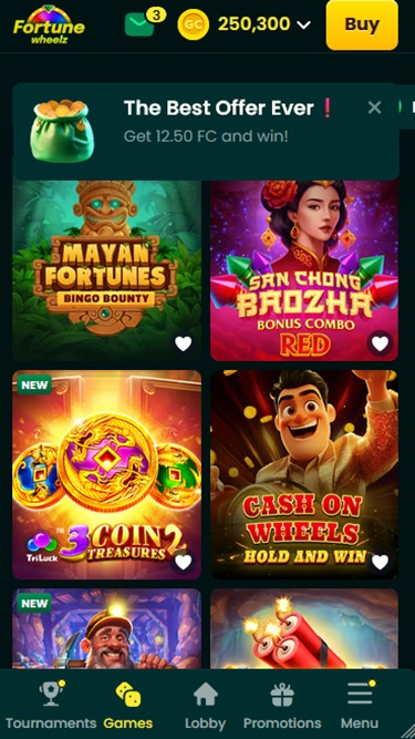 Игроки могут пользоваться текущими акциями и бонусами, включая ежедневные награды, сезонные события, турниры, мини-игру в бинго и пакетные предложения, предоставляющие им значительное количество золотых и фортун-монет. Бренд постоянно обновляет и расширяет свою программу акций, поэтому вы никогда не знаете, что вас ждет впереди, что делает игровой процесс всегда интересным.