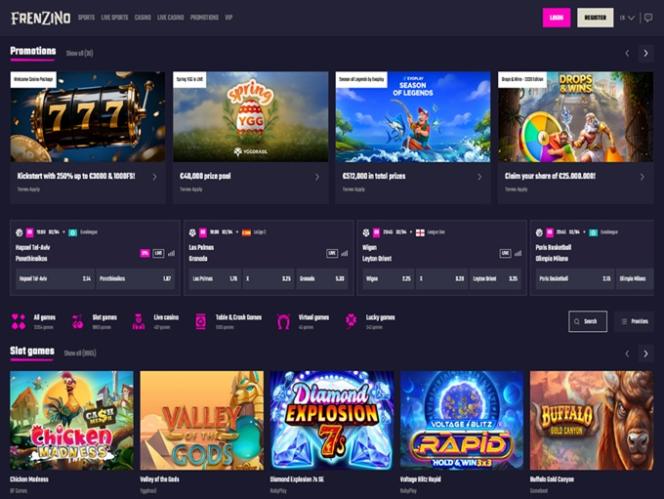 Frenzino — это онлайн-казино и букмекерская контора, поддерживающая криптовалюты и работающая по лицензии Kahnawake. Здесь предлагаются тысячи игр казино, таких как слоты, настольные игры, например, баккара, рулетка и блэкджек, а также игры с элементами краша и виртуальные игры.