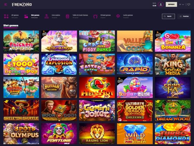 Несмотря на то, что в библиотеке казино тысячи различных игр, слоты по-прежнему составляют большинство доступных игр. В Frenzino вы сможете ознакомиться с захватывающими новинками от многих известных имен в индустрии . Вот лишь некоторые из игр, которые вы сможете попробовать: