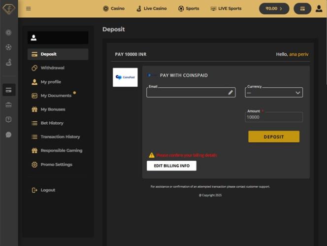 Игрокам, возможно, потребуется пройти процедуру KYC для подтверждения учетной записи.