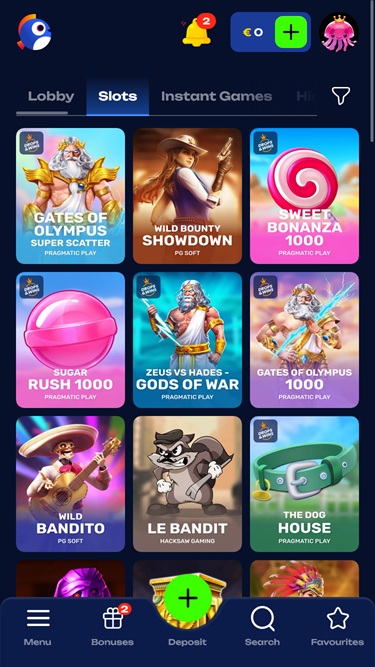 Если не обращать внимания на броский внешний вид, вы увидите, что этот игорный сайт предлагает невероятно разнообразный и широкий выбор игр казино, в которые вы сможете погрузиться с головой. Каталог кажется бесконечным, в нем представлены тысячи уникальных игр в различных категориях, включая онлайн-слоты, мгновенные игры , игры с живыми дилерами и настольные игры.