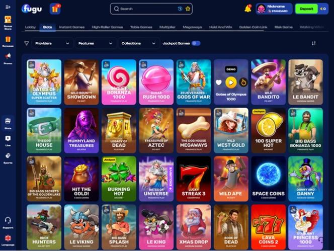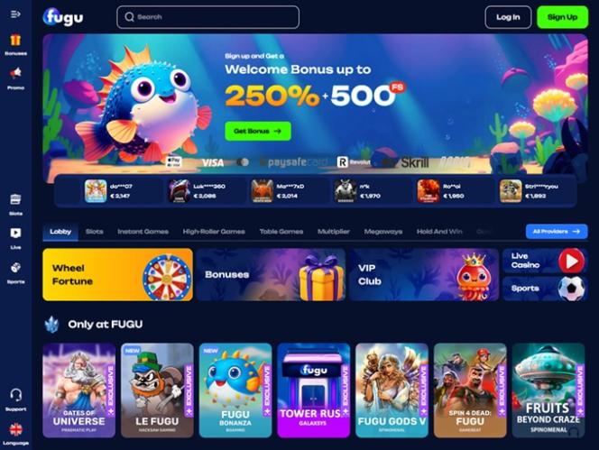 Появившись на рынке в 2024 году, Fugu Casino привлекло большую аудиторию игроков из Канады, Германии, Австрии, Швейцарии и Ирландии, предложив обширный каталог игр казино, вариантов ставок, акций и бонусов. Бренд предлагает огромную библиотеку слотов, игр с живыми дилерами, настольных игр и игр с мгновенным обвалом, что делает его идеальным местом для азартных игр практически для каждого игрока.