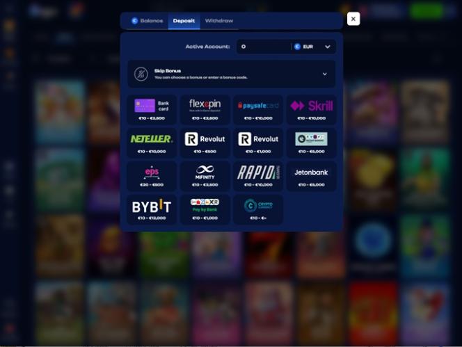 Казино принимает как фиатные валюты, так и криптовалюты.
