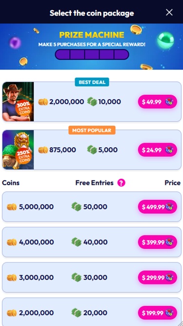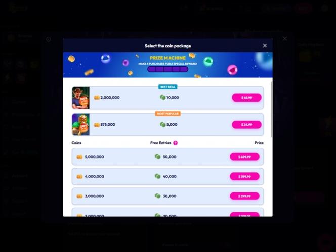 Поскольку это социальное казино , игроки смогут опробовать все игры и контент без необходимости совершать покупки за реальные деньги, и смогут наслаждаться играми бесплатно. На сайте представлены турнирные монеты и рекламные билеты — две уникальные виртуальные валюты для игры и участия в различных событиях.