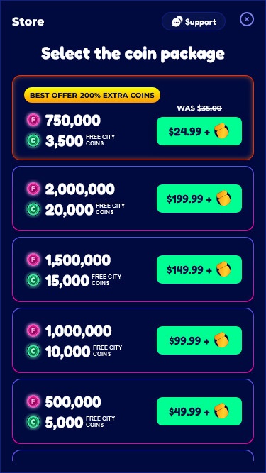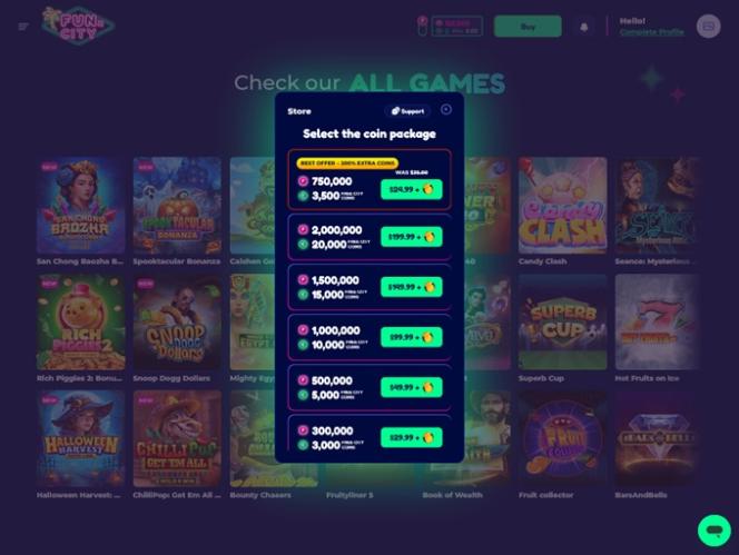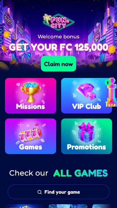 Каждому социальному казино необходима надежная рекламная стратегия для привлечения большой аудитории, и FunzCity Casino именно это и сделало. Каждый новый аккаунт получит бонус в виде Fun Coins и City Coins, чтобы начать свое путешествие с удовольствием, не беспокоясь о балансе.