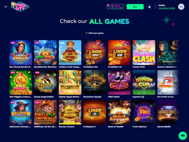 FunzCity Casino — это ориентированный на США сайт социальных игр, где для игры в постоянно расширяющийся ассортимент слотов не требуется совершать покупки. Визуально, на наш взгляд, это очень привлекательный сайт, который разумно сочетает в себе множество элементов и страниц, поэтому у игроков не возникнет проблем с навигацией. Помимо привлекательного внешнего вида, достигнутого благодаря красивой цветовой палитре из темно-синего фона и неоново-зеленых цветов, сайт работает быстро, отзывчиво и интуитивно понятен.