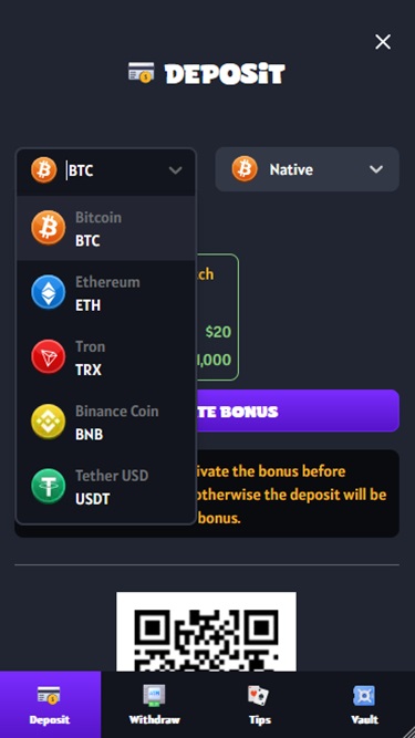 Как мы уже упоминали ранее, это онлайн-казино, дружественное к криптовалютам, и поддерживает такие популярные платежные системы, как Bitcoin, Ethereum, Tron, Tether и другие.