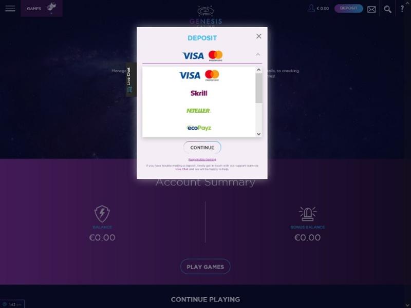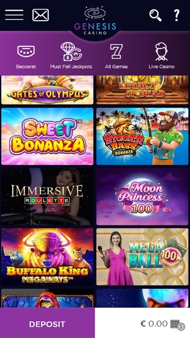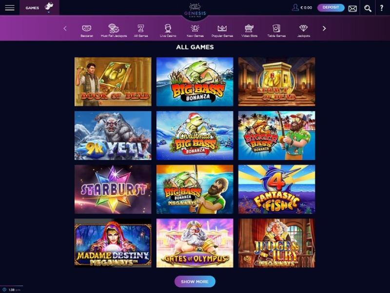 Казино Genesis работает на программном обеспечении Microgaming, Net Entertainment, Big Time Gaming, Evolution Gaming, Ezugi, iSoftBet, Oryx, Play'n GO, Quickspin, Rabcat, Relax Gaming, Yggdrasil, Wazdan, Pragmatic Play, Red Tiger Gaming, Kalamba, Skywind, Triple Edge Studios, Northern Lights Gaming, Stormcraft Studios, Dreamtech Gaming, All41 Studios, Gameburger Studios, Neon Valley Studios, TrueLab Games, SpinPlay Games, GONG Gaming, Holle Games, Games Global, EveryMatrix, NYX Interactive, Push Gaming, Gamomat, MGA, Foxium, Just For The Win, Golden Hero, Fortune Factory Studios, ReelPlay, Alchemy Gaming, Boomerang Studios, Gold Coin Studios, Bang Bang Games, Half Pixel Studios, Peter And Sons, Eurostar Studios and Aurum Signature Studios , а игры предоставляются через веб-платформу мгновенной игры. Это означает, что игры загружаются непосредственно в вашем интернет-браузере, без необходимости загрузки громоздкого программного обеспечения. Поддерживается также игра на мобильных устройствах, что позволяет играть в игры со смартфона или планшета.