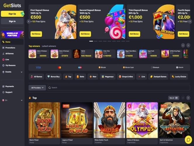 GetSlots работает на платформе Microgaming, Net Entertainment, Playtech, BetSoft, 1x2gaming, Amatic Industries, Big Time Gaming, ELK Studios, Evolution Gaming, EYECON, Ezugi, Habanero Systems, iSoftBet, lightningboxgames, Play'n GO, playson, Quickspin, Relax Gaming, SOFTSWISS, Thunderkick, Yggdrasil, Endorphina, Wazdan, GameArt, Betgames, Booming Games, Pragmatic Play, Nolimit City, Red Tiger Gaming, Booongo, Spinomenal, Felix Gaming, Red Rake Gaming, Skillzzgaming, Belatra Games, Fantasma Games, Platipus Gaming, Nucleus Gaming, Triple Edge Studios, BGAMING, Northern Lights Gaming, Evoplay, Stormcraft Studios, IGTech, Switch Studios, Electric Elephant Games, Bulletproof Games, All41 Studios, Gluck Games, Mascot Gaming, Gameburger Studios, Pulse 8 Studios, Neon Valley Studios, Golden Rock Studios, TrueLab Games, SpinPlay Games, Real Dealer Studios, GONG Gaming, Blue Guru Games, On Air Entertainment, Buck Stakes Entertainment, Games Global, Reevo, Amusnet Interactive, Ash Gaming, Blueprint Gaming, CT Interactive, Igrosoft, Merkur Gaming, Push Gaming, Gamomat, Mr Slotty, Reel Time Gaming, Authentic Gaming, Iron Dog Studio, Old Skool Studios, Foxium, Just For The Win, Reflex Gaming, PearFiction Studios, Wild Streak Gaming, Slingshot Studios, 4ThePlayer, AvatarUX, Gamevy, Crazy Tooth Studio, ReelPlay, Alchemy Gaming, Rarestone Gaming, Black Pudding Games, Snowborn Games, Boomerang Studios, Hacksaw Gaming, Max Win Gaming, Gold Coin Studios, Bang Bang Games, Half Pixel Studios, SilverBack Gaming, Peter And Sons, Eurostar Studios, Lucksome Gaming, 3 Oaks Gaming, Amigo Gaming, Wishbone Games, Apparat Gaming, Spribe, Circular Arrow, Print Studios, 1spin4win, HammerTime Games, Four Leaf Gaming, INO Games, Nailed It! Games, Neko Games, Reel Kingdom, Oros Gaming, Zillion Games and NowNow Gaming , и их игры доступны через веб-платформу, к которой вы получаете доступ с помощью интернет-браузера. Я бы сказал, что сайт хорошо разработан и прост в навигации. Казино также поддерживает мобильные игры, позволяя вам играть, используя свой смартфон или планшет.