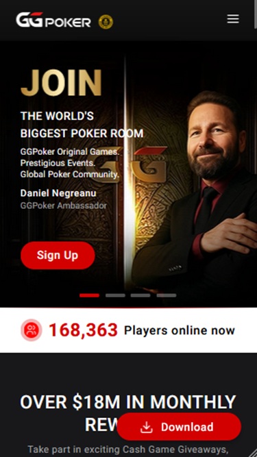 Зайдя на сайт, вы заметите, что там нет доступных игр. Это потому, что у этого онлайн-казино есть отдельное приложение, которое необходимо скачать для доступа ко всем покерным комнатам, турнирам и играм казино.