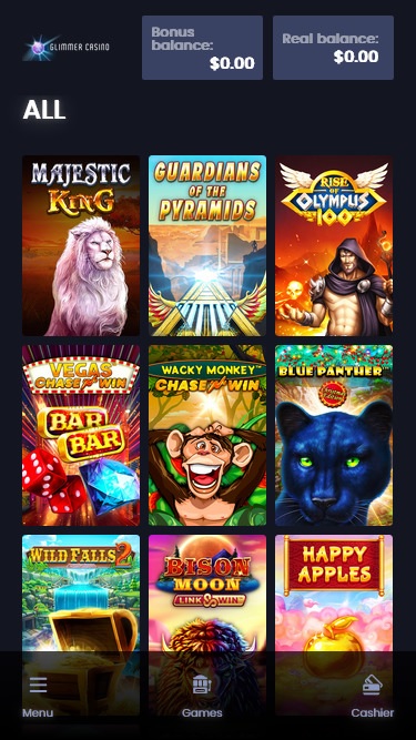 Казино Glimmer работает на программном обеспечении Microgaming, Net Entertainment, BetSoft, 1x2gaming, Barcrest, Big Time Gaming, ELK Studios, Evolution Gaming, EYECON, Ezugi, lightningboxgames, Play'n GO, playson, Rabcat, Rival, Thunderkick, Vivo Gaming, Wazdan, PlayPearls, Pragmatic Play, Nolimit City, Red Tiger Gaming, Booongo, LuckyStreak, Spinomenal, Skillzzgaming, Fugaso, Kalamba, Triple Edge Studios, Northern Lights Gaming, Evoplay, Stormcraft Studios, Switch Studios, All41 Studios, TVBet, Gameburger Studios, Pulse 8 Studios, Neon Valley Studios, Super Spade Games, Shuffle Master, SpinPlay Games, Real Dealer Studios, GONG Gaming, On Air Entertainment, Buck Stakes Entertainment, Caleta Gaming, Games Global, 2by2 Gaming, Blueprint Gaming, Games Warehouse, NextGen, Tom Horn Gaming, WMS, Inspired Gaming, SG Interactive, Red7Mobile, CORE Gaming, Scientific Games, Mr Slotty, Reel Time Gaming, Iron Dog Studio, Old Skool Studios, Foxium, Betdigital, Just For The Win, PearFiction Studios, Wild Streak Gaming, Slingshot Studios, Fortune Factory Studios, Gamevy, Crazy Tooth Studio, ReelPlay, Alchemy Gaming, Black Pudding Games, Snowborn Games, Hacksaw Gaming, SimplePlay, Gold Coin Studios, Half Pixel Studios, Aurum Signature Studios and Lucksome Gaming , а игры доступны как через веб-платформу, так и через мобильный сайт, позволяющий играть на совместимых устройствах с небольшим экраном.Blackjack