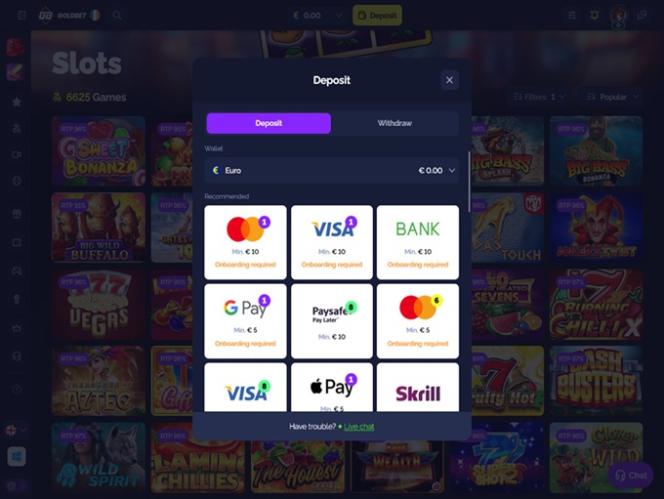 Запущенное в 2000 году, GoldBet — одно из старейших онлайн-казино, пережившее множество взлетов и падений. Однако ему удалось возродиться и предложить игрокам широкий выбор игр казино и вариантов ставок на спорт. Игроки могут наслаждаться сотнями онлайн-слотов, играми с живыми дилерами, настольными играми, бинго, лотереями и покерными комнатами, а также десятками акций и бонусов, которые позволят им развлекаться часами напролет.