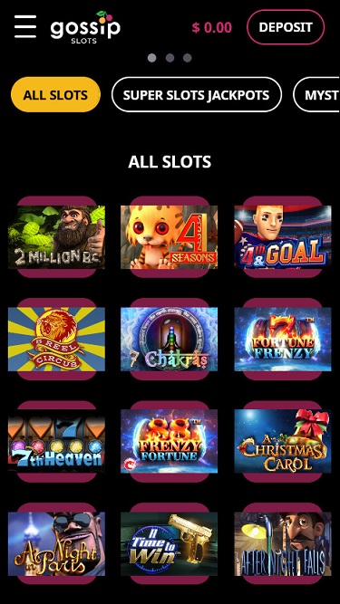 Самый большой выбор игр казино на Gossip Slots представлен разработчиками BetSoft Gaming, включая множество 3D-слотов, доступных как на настольных компьютерах, так и на мобильных устройствах. Эти игры отличаются одним из лучших показателей качества в индустрии онлайн-казино и сочетают в себе интерактивные функции, которые делают игру увлекательной.