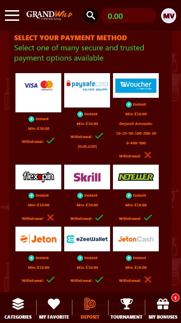Казино GrandWild работает на программном обеспечении Microgaming, Playtech, BetSoft, 1x2gaming, Amatic Industries, Big Time Gaming, ELK Studios, Evolution Gaming, Ezugi, iSoftBet, Oryx, playson, Quickspin, Relax Gaming, Thunderkick, Endorphina, Wazdan, Betgames, Booming Games, Stakelogic, Pragmatic Play, Red Tiger Gaming, Spinomenal, Red Rake Gaming, FunFair, SYNOT Games, Kalamba, Revolver Gaming, BGAMING, Pocket Games Soft, Slot Factory, Spearhead Studios, Swintt, Qora Games, Lady Luck Games, Games Global, Amusnet Interactive, Wizard Games, Ash Gaming, CT Interactive, Leander Games, Merkur Gaming, Pariplay, Push Gaming, Tom Horn Gaming, Gamomat, BF Games, Wild Streak Gaming, Golden Hero, Green Jade Games, Gamevy, NetGaming, High 5 Games, Rarestone Gaming, Black Pudding Games, Hacksaw Gaming, Max Win Gaming, Arcadem, Peter And Sons and FlipLuck , и предлагает свои игры как в виде загружаемого программного обеспечения, так и в виде веб-версии для мгновенной игры.