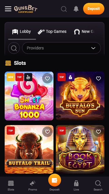 На сайте Gunsbet представлено огромное количество слотов, включая видеоигры и классические игры. Среди разработчиков — Microgaming, Net Ent, iSoftbet, Pragmatic и другие. Также доступны крупные прогрессивные джекпоты от Microgaming, дающие вам шанс выиграть Mega Moolah, Major Millions и другие крупные призы. Здесь также можно найти мобильные слоты, позволяющие играть на ходу.
