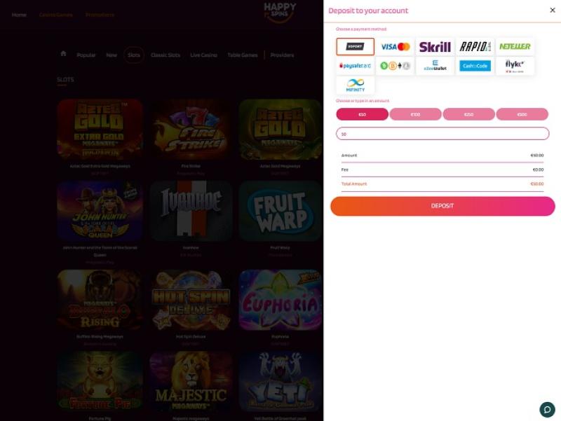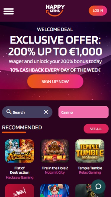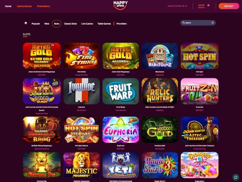 HappySpins — это бренд, название которого отсылает к «вращению» игровых автоматов, но, учитывая длинный список поставщиков программного обеспечения, неудивительно, что это онлайн-казино предлагает полный спектр игр, а не только видеослоты.