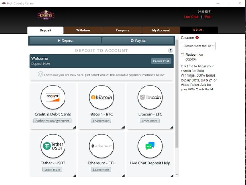 Казино High Country работает на платформе RTG, и игры казино доступны как в виде загружаемого программного обеспечения, так и в веб-версии. Если у вас не очень медленное интернет-соединение, я рекомендую использовать веб-версию, поскольку она не требует установки чего-либо на ваш компьютер. Поддерживается и мобильная игра, позволяющая играть как на смартфоне, так и на планшете.