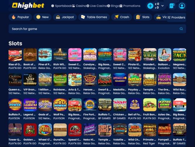 Оператор сотрудничает с популярными разработчиками программного обеспечения для онлайн-казино , которые предоставляют Highbet полный спектр игр. В списке поставщиков игр казино фигурируют многие известные компании (Evolution Gaming, Ezugi, NetEnt, Microgaming, Yggdrasil...).