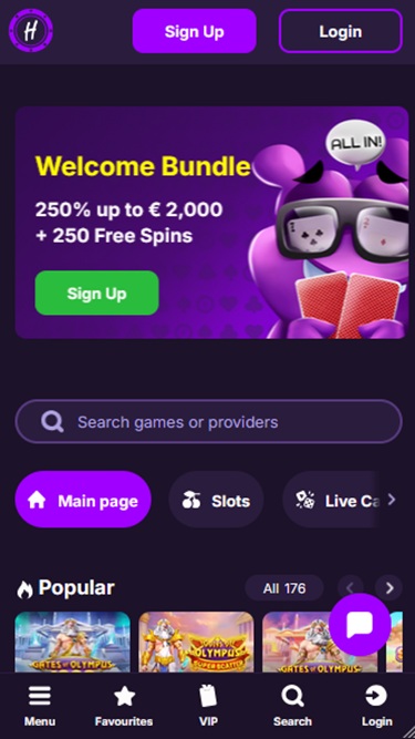 Здесь много всего интересного, и оператор упростил игрокам просмотр и изучение всего веб-сайта благодаря удобному интерфейсу, который не только приятен на вид, но и прост в навигации. Фиолетовая цветовая гамма придает бренду много яркости и индивидуальности; мы думаем, игрокам понравится проводить здесь время.