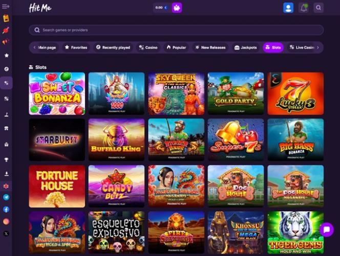 Как и многие другие онлайн-казино, Hit Me Bet Casino уделяет первостепенное внимание расширению своей коллекции слотов на реальные деньги . Это не означает, что здесь нет большого выбора других игр казино. Тем не менее, совершенно очевидно, что оператор приложил максимум усилий к расширению и диверсификации своего каталога онлайн-слотов.