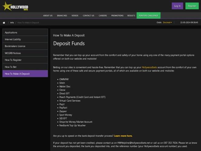 Казино Hollywoodbets — пионер и ведущий игорный бренд, ориентированный исключительно на игроков из Южной Африки. С момента своего запуска в конце 1990-х годов этот игорный сайт и букмекерская контора смогли предложить внушительный выбор вариантов ставок на спорт и множество игр казино, включая онлайн-слоты Spina Zonke, игры с живыми дилерами, настольные игры и игры типа Crash. Казино также предлагает различные акции, спортивные бонусы, мероприятия и турниры, в которых могут участвовать игроки.