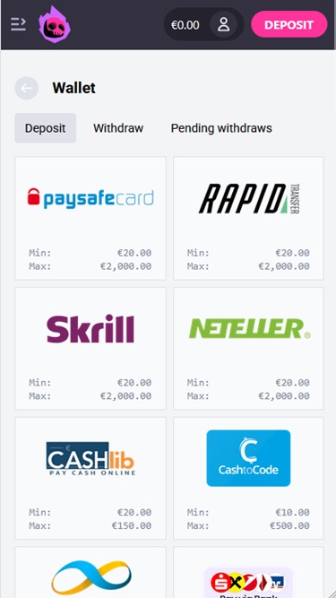 Казино предлагает широкий выбор способов пополнения и вывода средств, однако следует помнить, что некоторые из них могут быть недоступны в вашей стране проживания.