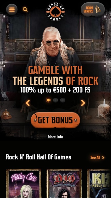 Не удивляйтесь! В казино House of Spades есть раздел слотов Rock Games, в который входят: Monsters of Rock Megaways, Danger! High Voltage, The Final Countdown, Lil Devil, Parrots Rock, Punk Rocker, Rockstar, Music Stage, Feel The Music, Rock the Cash Bar, Slots Angels, Rock the Reels Megaways, Spinning Lights и многие другие.