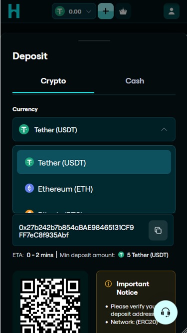 Казино поддерживает две фиатные валюты для пополнения и вывода средств: доллар США и евро.