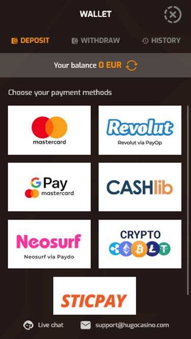 Приветствую всех. Я бы сказал, что у Hugo Casino один из лучших веб-дизайнов, о которых только можно мечтать среди онлайн-казино, плюс отличная бонусная система с миссиями для получения наград и т.д. Множество способов пополнения счёта (к сожалению, иногда минимальные суммы для криптовалюты очень высокие). Однозначно стоит посетить.