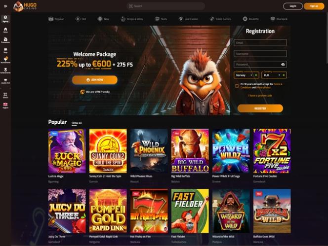 Казино Hugo следует последним тенденциям в сфере iGaming; оно отличается красивым дизайном и современным функционалом, который, как мы считаем, понравится игрокам.