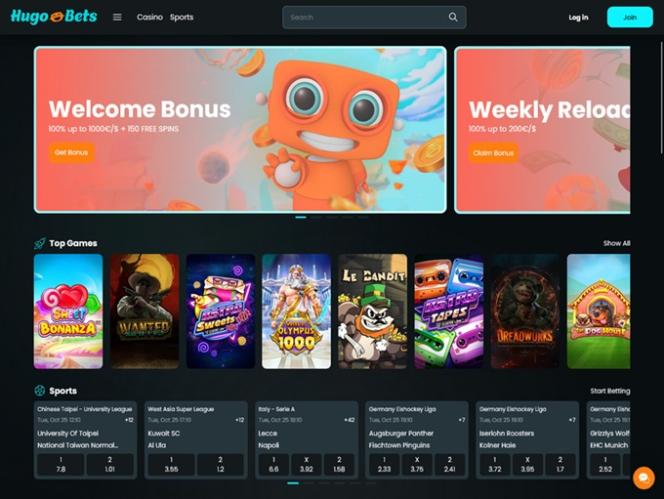 HugoBets — это крупное онлайн-казино и сайт для ставок на спорт, который в первую очередь предлагает игрокам широкий выбор азартных игр. Бренд уделяет большое внимание разнообразию, поэтому вы сможете сыграть в сотни захватывающих игр казино, включая слоты на реальные деньги, игры с живыми дилерами, настольные игры и игры с крашем, а также получить доступ к впечатляющему набору акций, бонусов, турниров и других наград.