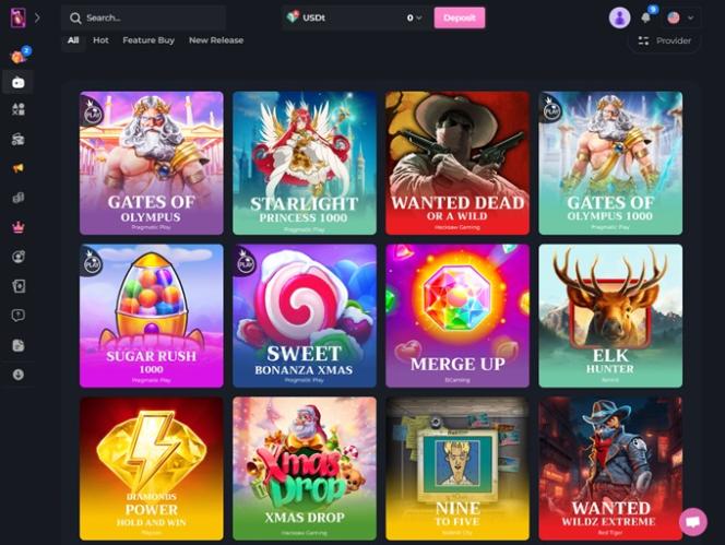 Процесс регистрации прост, а категории игр хорошо организованы, что позволяет игрокам легко находить то, что им нужно. Доступный контент структурирован по категориям: Все игры, Слоты, Казино с живыми дилерами, Блэкджек, Баккара, Рулетка, Игровые шоу, Настольные игры и Виртуальный спорт, что обеспечивает игрокам удобную навигацию по обширному выбору игр.