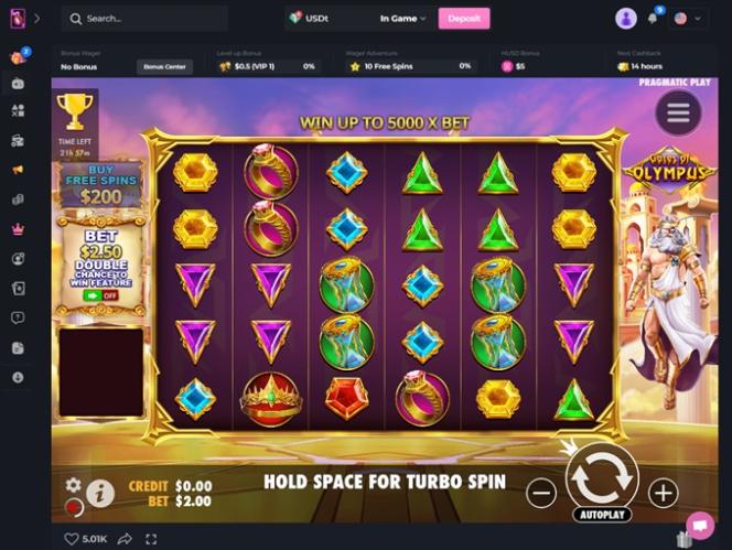 В казино также используется собственная бонусная валюта под названием HUSD, которую игроки зарабатывают при первом пополнении счета. Эту валюту можно обменять на стейблкоины — криптовалюту, созданную для поддержания стабильности стоимости за счет привязки к эталонному активу, — но она не подлежит передаче или выводу.