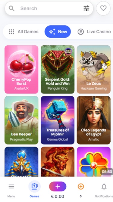 Существует две основные категории: Игры и Акции . Нажав на «Игры», вы получите доступ к списку всех доступных игр, новинок, игр с живыми дилерами , хайповых предложений, джекпотов и бонусных покупок. Список разработчиков программного обеспечения для онлайн-казино полон известных имен, таких как Quickspin, Relax Gaming, Spinomenal, Pragmatic Play и других авторитетных компаний, которые производят высококачественный контент, который обычно выбирают игроки. Игры с живыми дилерами предлагают прекрасную динамику, особенно если вам нравится более интерактивный контент, где вы можете общаться с живыми дилерами, а также с другими участниками казино.