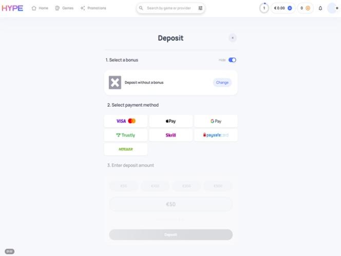 Основной валютой Hype Casino является евро.