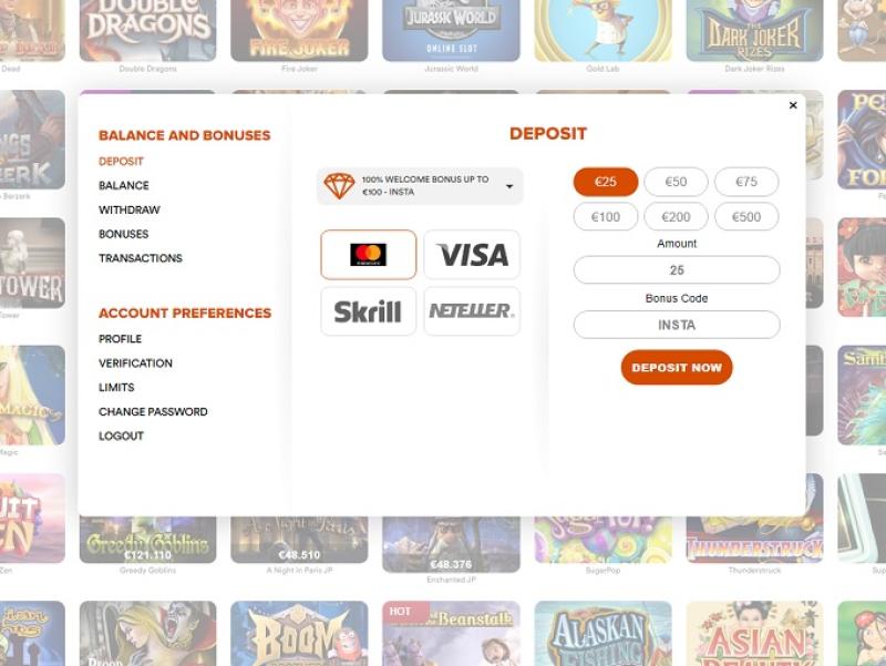 InstaCasino работает на платформе Microgaming, Net Entertainment, BetSoft, Big Time Gaming, ELK Studios, Evolution Gaming, Genesis Gaming, lightningboxgames, Play'n GO, Quickspin, Rabcat, Thunderkick, Yggdrasil, Games Global, 2by2 Gaming, bluberi, Leander Games, NextGen, Push Gaming and Geco Gaming , которая предоставляет широкий выбор игр через веб-платформу, не требующую загрузки.Blackjack