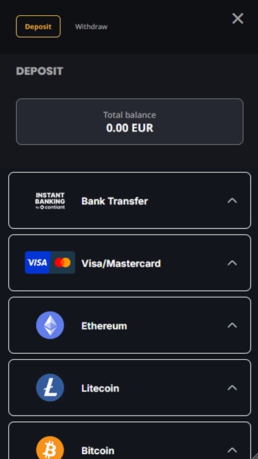 Казино предлагает популярные и широко используемые способы оплаты, включая различные онлайн-платежные системы, электронные кошельки, дебетовые и кредитные платежные карты, а также банковские переводы. Для тех, кто предпочитает криптовалюты, транзакции поддерживаются через криптокошельки и несколько известных цифровых валют, таких как Bitcoin, Bitcoin Cash, Tron, Ripple и Tether.