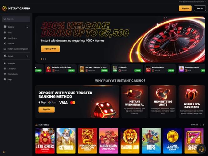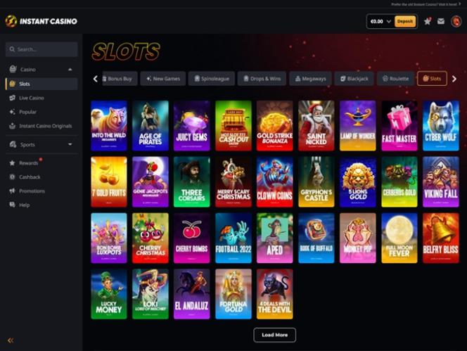 В Instant Casino представлено почти пять тысяч онлайн-слотов . Игроки найдут здесь впечатляющий выбор слотов, включая как классические, так и новые, модные игры.