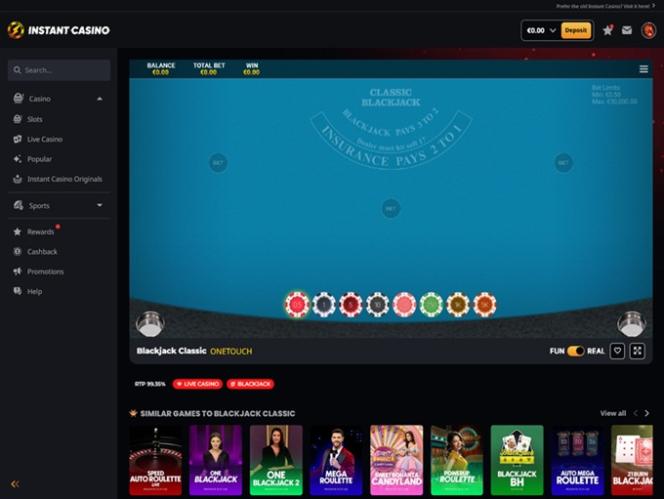 Instant Casino — это онлайн-казино и букмекерская контора, лицензированная и регулируемая Комиссией по контролю за азартными играми Кюрасао. Основной целевой аудиторией этого iGaming-бренда являются игроки из Великобритании, Канады, Нидерландов, Германии, Швеции и Италии. Платформа локализована на арабский, немецкий, греческий, английский, испанский, финский, французский, индонезийский и ряд других мировых языков, что является отличным вариантом для игроков из разных стран.