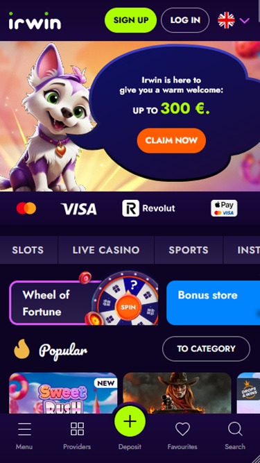 Запущенное в 2024 году, Irwin Casino — это современный игорный сайт, предлагающий игрокам множество различных вариантов, включая слоты на реальные деньги, настольные игры, игры с живыми дилерами, игры на деньги и даже отдельный раздел ставок на спорт. Помимо многочисленных акций, бонусов, турниров и VIP-программы, бренд также принимает различные криптовалюты в качестве способов оплаты.