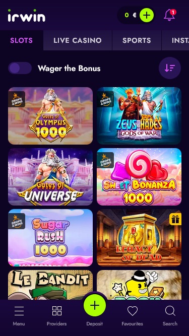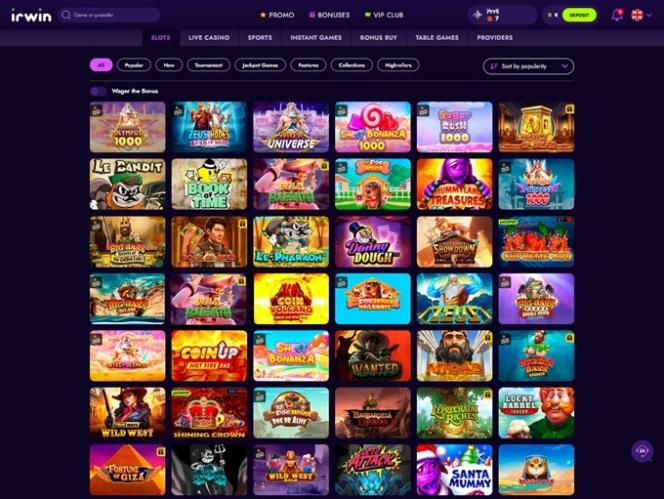 Помимо привлекательного внешнего вида, казино Irwin также стремится предложить игрокам широкий выбор игр, которые они могут просмотреть и насладиться. Здесь есть онлайн-слоты, игры с живыми дилерами, настольные игры и игры на выбывание, а каталог включает множество вариаций каждого жанра, так что заскучать не удастся.