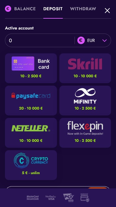 Казино Irwin принимает для пополнения счета и вывода средств как фиатные валюты, так и криптовалюты.
