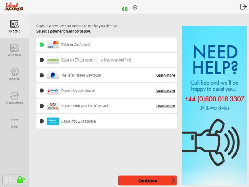 Варианты банковских операций в Island Jackpots