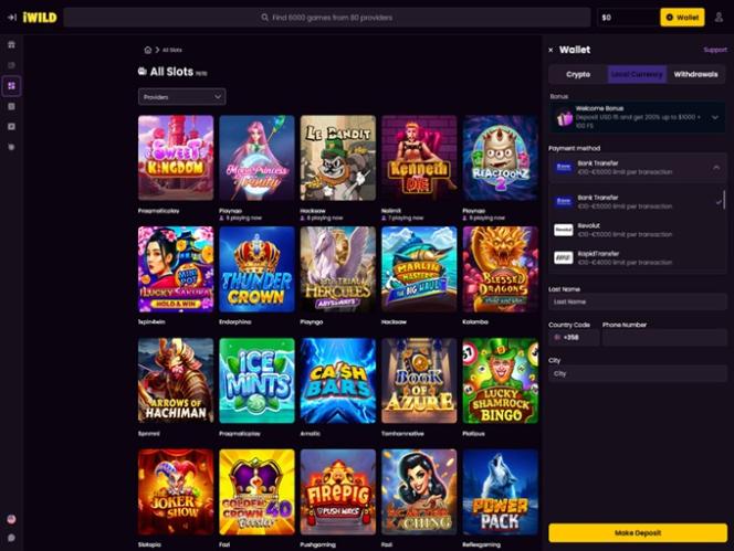 Этот оператор предлагает более 6000 онлайн-игр казино, включая игровые автоматы, игры с живыми дилерами, настольные игры и многое другое. Игровой сайт iWild сотрудничает с одними из лучших компаний-разработчиков игрового программного обеспечения в индустрии iGaming: Microgaming, NetEnt, Evolution Gaming , Betsoft...