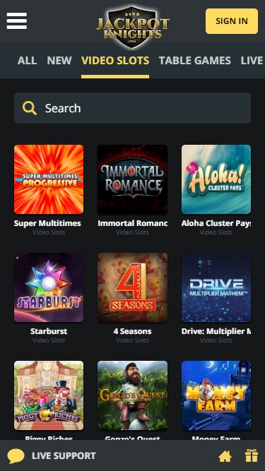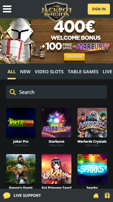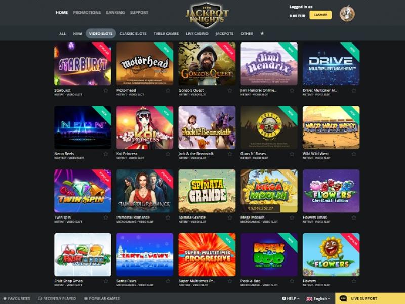 В казино Jackpot Knights представлены сотни видеослотов, и сайт предлагает игрокам возможность вращать барабаны в одних из лучших игр в мире. Игроки также найдут здесь множество прогрессивных джекпотов, которые могут мгновенно изменить вашу жизнь, предлагая призы на миллионы евро.